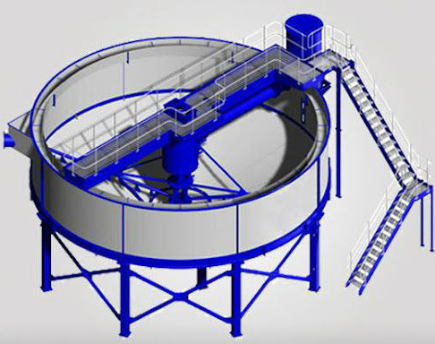 In order to reuse the water obtained from washing materials and re-enter it into the washing cycle, we need to clean the water from mud and particles remaining in it. For this purpose, using the thickener device, we stick together the waste materials and mud in the water in the form of strings and masses and separate them from the water by weighing them down.